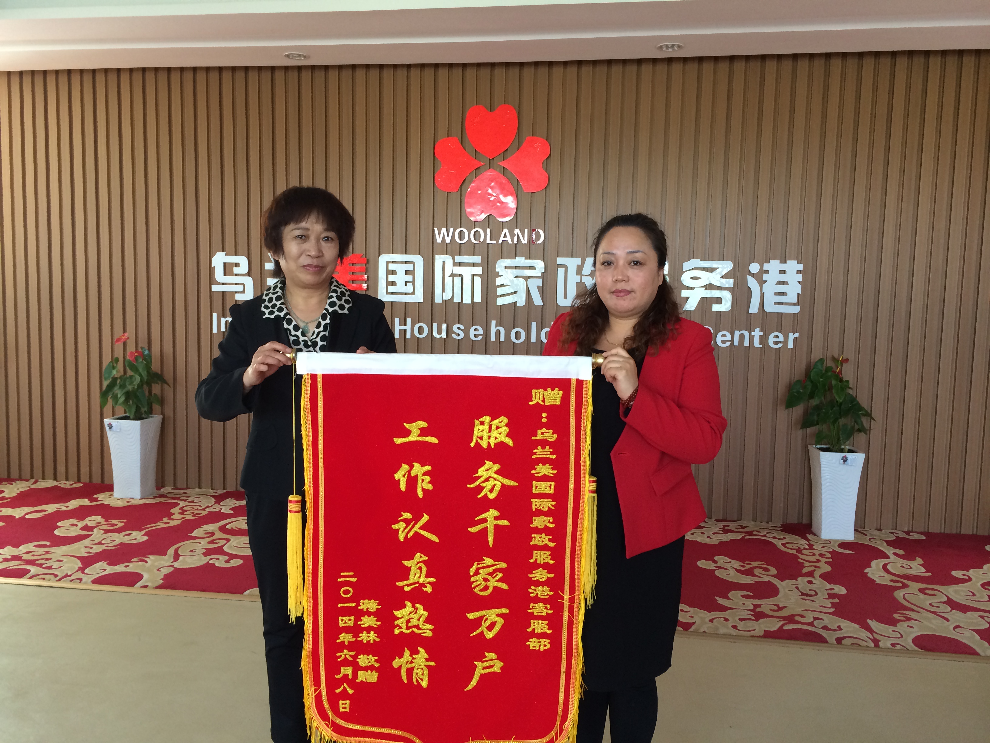 2014年6月10日,烏蘭美健康服務(wù)有限公司又收到了一面錦旗,該錦旗由客戶蔣女士贈(zèng)予烏蘭美客服部,旗面書(shū)寫(xiě)“服務(wù)千家萬(wàn)戶,工作認(rèn)真熱情”,對(duì)客服部的工作給予了極大肯定。